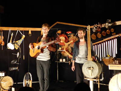 Gratuit, tout public, y compris très jeune public. Pendant le spectacle, espace de motricité mis à disposition des 0-3 ans, sous la responsabilité des parents et un espace jeux animé par la ludothèque associative de Coligny. Vidéo ICI. Mécanismes sonores, engrenages, lutherie inventive et empirique, objets divers pour musique artisanale : dans son atelier, la compagnie Bric à Brac Orchestra a, durant trois ans, imaginé et fabriqué le terrain de jeu insolite de ce spectacle.La Bobinoline, ou encore le Tintinnabulinophone prennent vie sous les doigts de ces deux inspirés qui emmènent dans leur révolution superphonique.